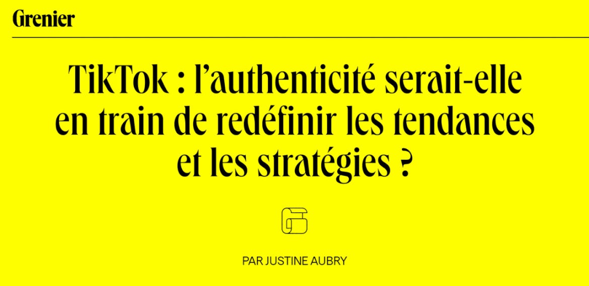 Jâai eu le plaisir de discuter avec Grenier Magazine pour leur numĂ©ro de la semaine derniĂšre. On a bien sĂ»r parlĂ© de TikTok, et plus prĂ©cisĂ©ment de lâimpact de lâauthenticitĂ© sur les stratĂ©gies publicitaires et les tendances. Vous pouvez lire lâarticle juste ici.