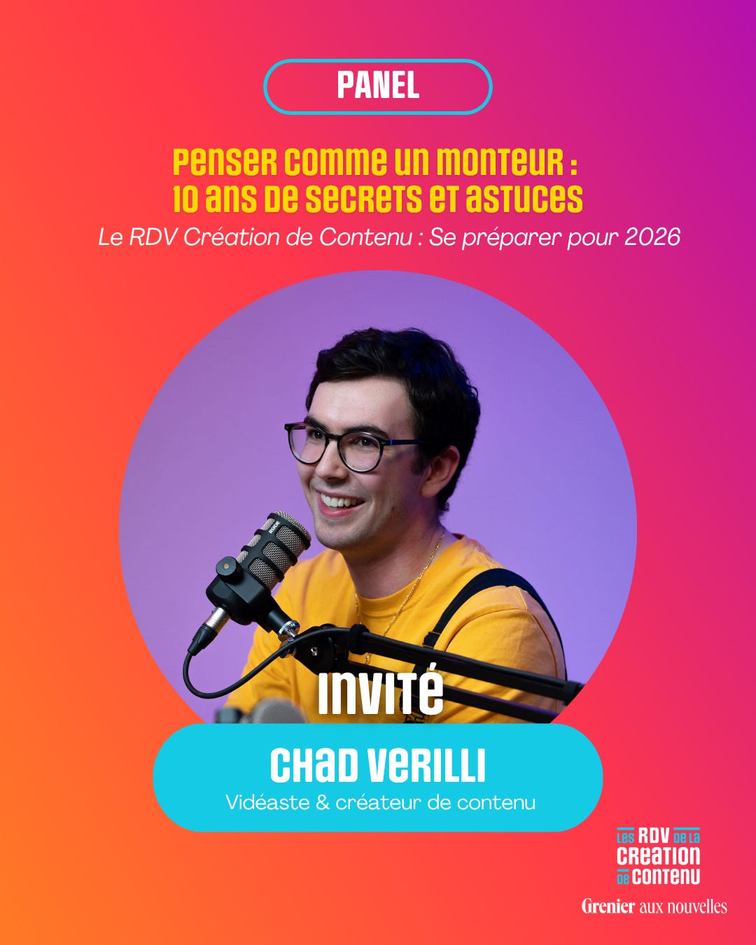 Avec Chad Verilli, vidéaste & créateur de contenu, nous partage ses secrets et astuces après 10 ans de carrière dans cet atelier. Il a développé une signature visuelle unique qu’on retrouve autant dans ses collaborations avec Maxi, Randolph Pub Ludique ou Télé-Québec que dans ses contenus personnels sur Instagram et TikTok.