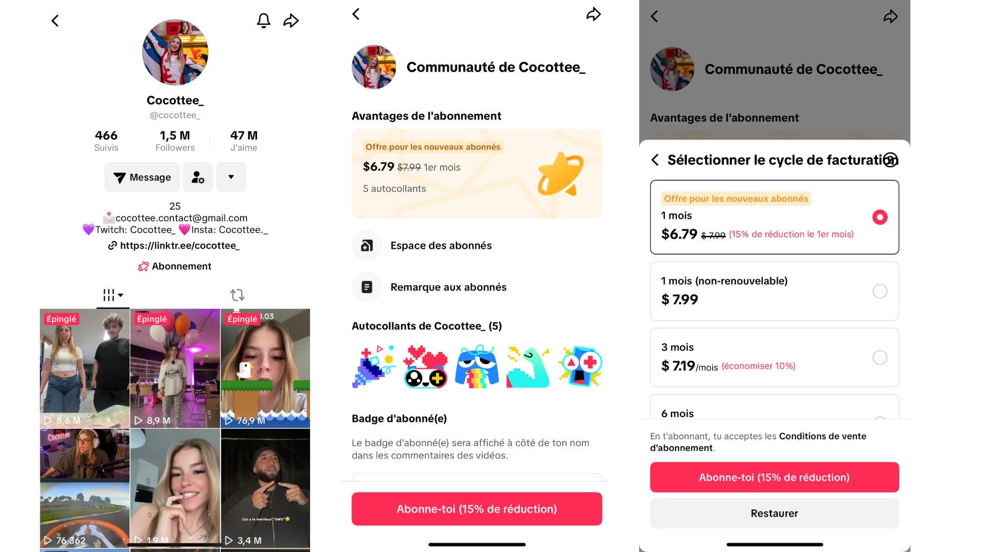 Bien que les créateur.trices de contenu au Canada n’aient pas accès au Creator Fund, les abonnements sur TikTok sont une autre façon de monétiser leur plateforme. Tout comme d’autres plateformes le font déjà, que ce soit à travers Patreon ou avec les outils natifs d’abonnements sur Youtube et Instagram, par exemple, TikTok offre cette option aux créateur.trices qui cumulent plus de 10K d’abonné.es et 100K de vues dans le dernier mois.