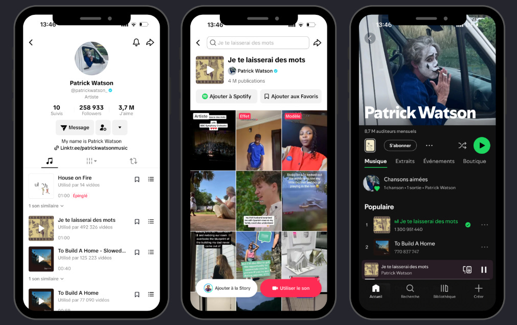 On se rapellera tous de la chanson Je te laisserai des mots, de Patrick Watson, qui a explosé sur TikTok entre 2021 et 2022, où elle a été utilisée dans des millions de vidéos, ce qui a contribué à sa popularité mondiale, au point d’atteindre plus d’un milliard de streams sur Spotify, une première pour une chanson francophone.